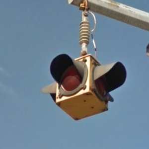 | These street view images are not very clear. These signals appear to be old porthole signals, possibly old 2-color Southern Autoflows converted to a bouncing beacons. (If anyone has better images or knows the details about these signals, please email me.) |