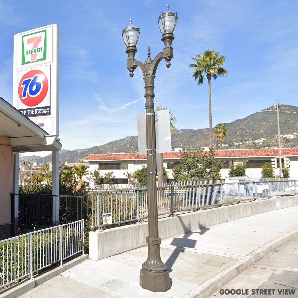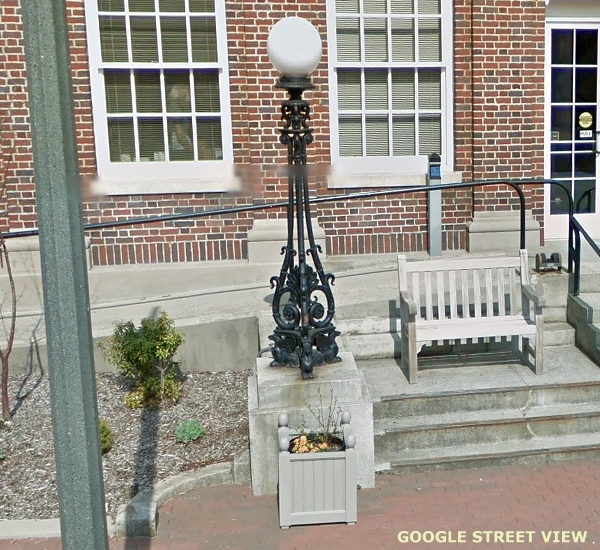 (This is Part Thirteen of a Street View tour of vintage and historical street and pedestrian lights for enthusiasts to view and in hopes of encouraging cities and towns to preserve some of these old luminaires and electroliers, or at least choose replicas that reflect the character of historic districts when modernizing their lighting. The images link to Google Street Views to make it easy to "look around" if an image interests you. The photos begin in