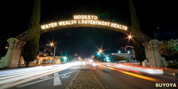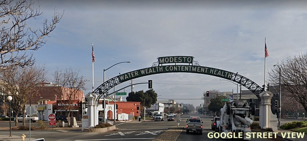 "Modesto Arch," built in 1912. (An opal glass lamp can be seen to the left.) (I Street)