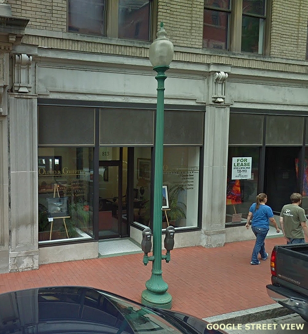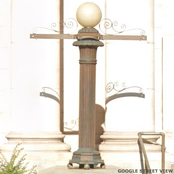 (This is Part Fourteen of a Street View tour of vintage and historical street and pedestrian lights for enthusiasts to view and in hopes of encouraging cities and towns to preserve some of these old luminaires and electroliers, or at least choose replicas that reflect the character of historic districts when modernizing their lighting. The images link to Google Street Views to make it easy to "look around" if an image interests you. The photos begin in