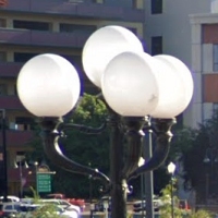Numerous well maintained post acorns with newer vintage refracting glass. (The Promenade)