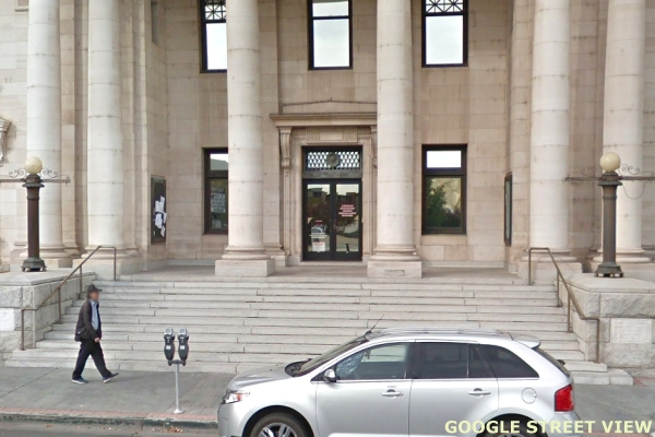 Old opal glass decorative posts, installed 1910. (Courthouse, Virginia Street)