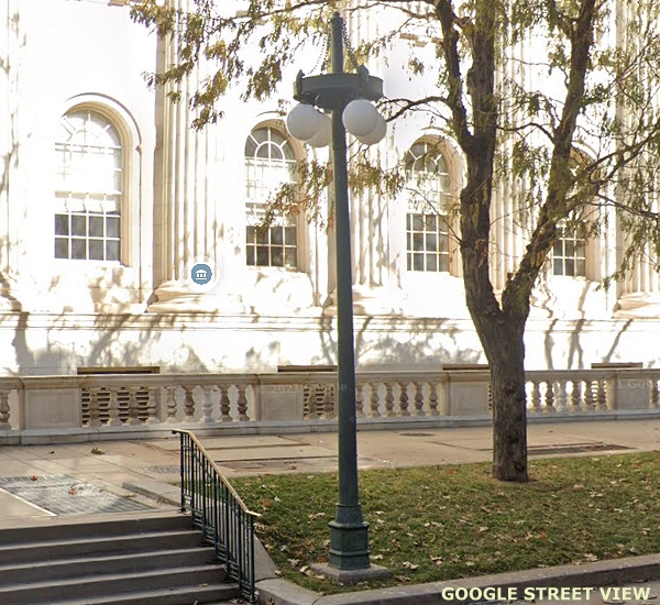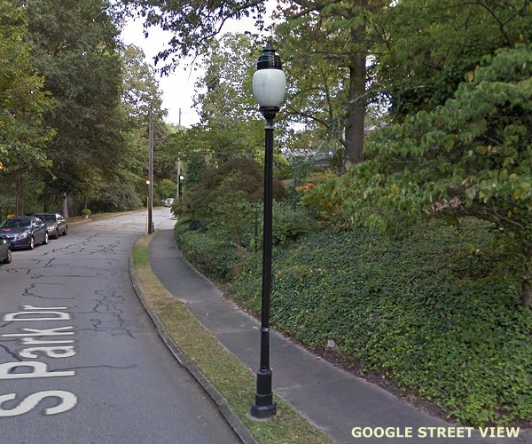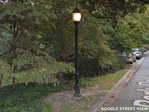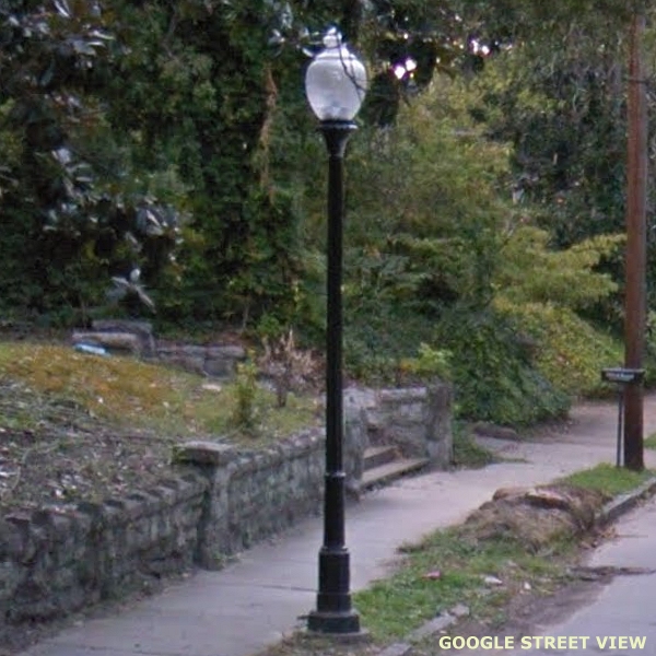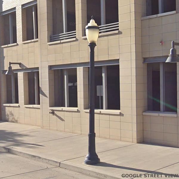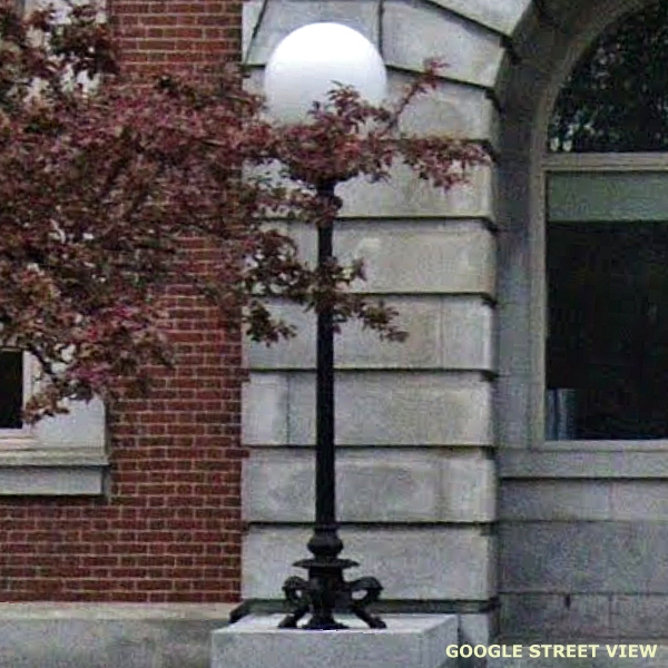 (This is Part Sixteen of a Street View tour of vintage and historical street and pedestrian lights for enthusiasts to view and in hopes of encouraging cities and towns to preserve some of these old luminaires and electroliers, or at least choose replicas that reflect the character of historic districts when modernizing their lighting. The images link to Google Street Views to make it easy to "look around" if an image interests you.