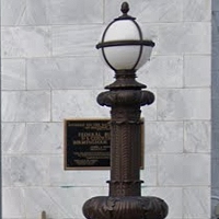 Opal glass triplets on very unique posts. (Old post office, 10th Street)