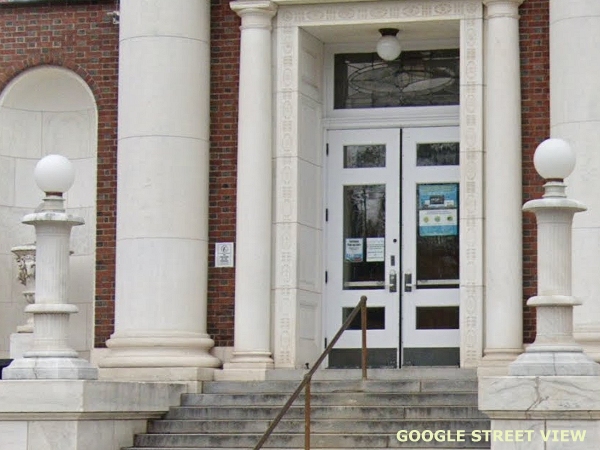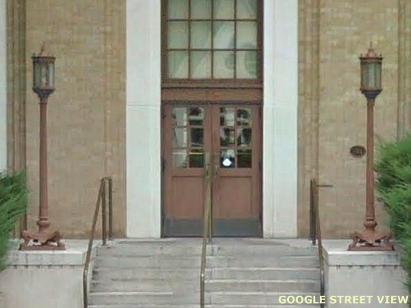 Opal glass columns at the entrance, 1924. (Former high school, Main Street)