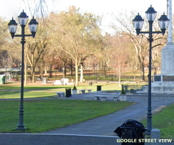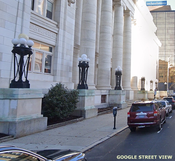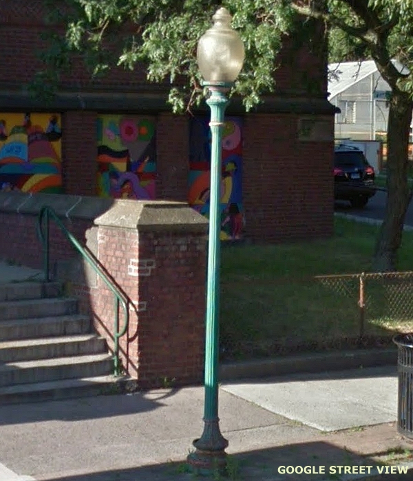 (This is Part Seventeen of a Street View tour of vintage and historical street and pedestrian lights for enthusiasts to view and in hopes of encouraging cities and towns to preserve some of these old luminaires and electroliers, or at least choose replicas that reflect the character of historic districts when modernizing their lighting. The images link to Google Street Views to make it easy to "look around" if an image interests you. The photos begin in