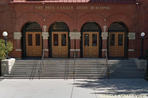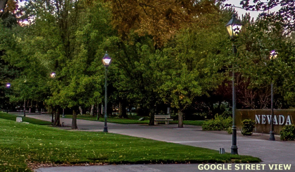 Opal glass on taller ornate posts. (Paul Laxalt Building, Carson Street)