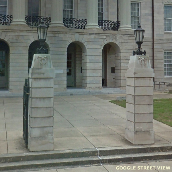 Post acorns in front of the Governor's Mansion. (Mountain Street)