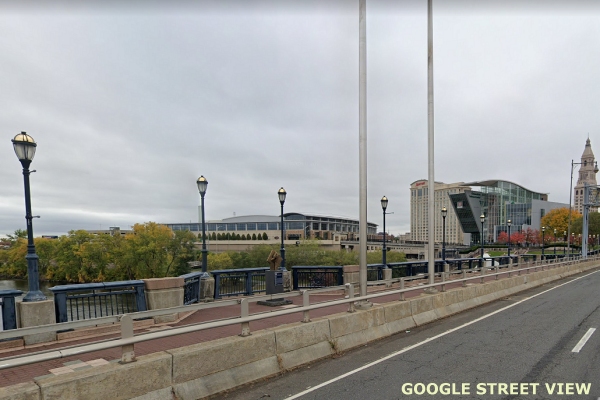 Gold topped posts on the bridge. (Founders Bridge, State Street, Connecticut River)