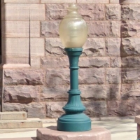 Opal glass globes on ornate posts. (Hartford City Hall, Main Street)