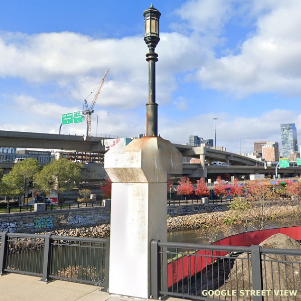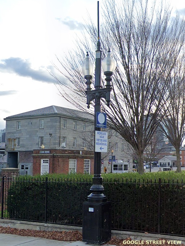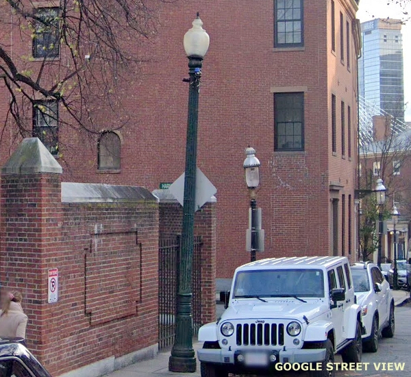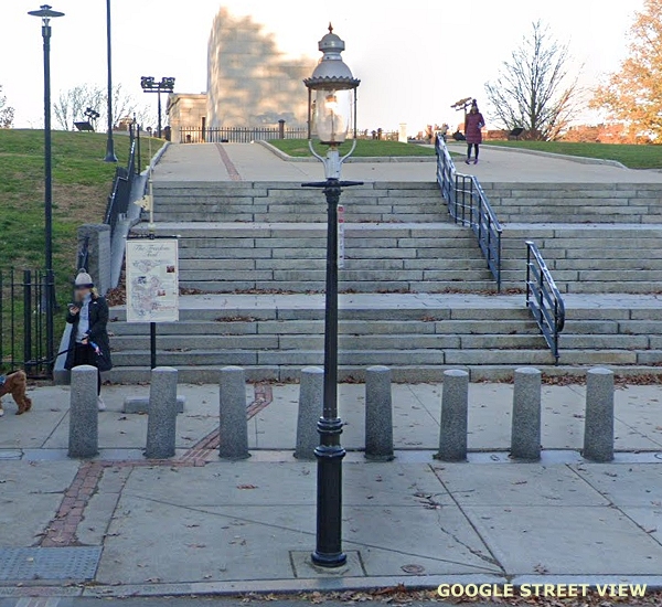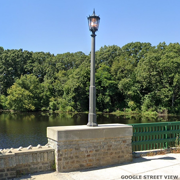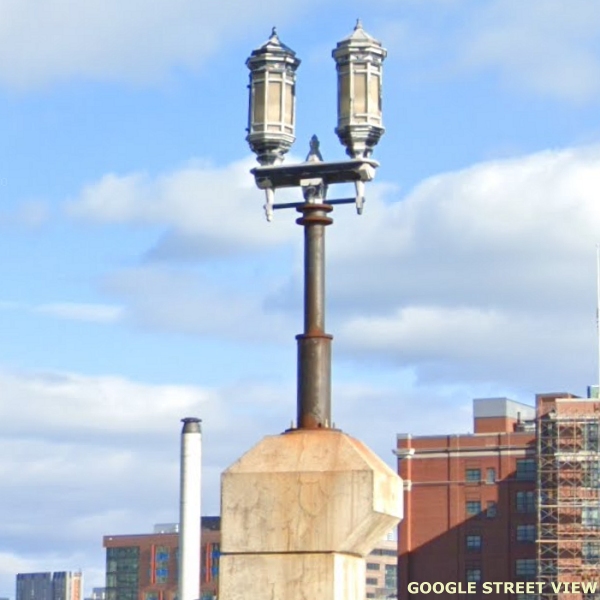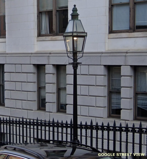 (This is Part Twenty One of a Street View tour of vintage and historical street and pedestrian lights for enthusiasts to view and in hopes of encouraging cities and towns to preserve some of these old luminaires and electroliers, or at least choose replicas that reflect the character of historic districts when modernizing their lighting. The images link to Google Street Views to make it easy to "look around" if an image interests you. The photos begin in