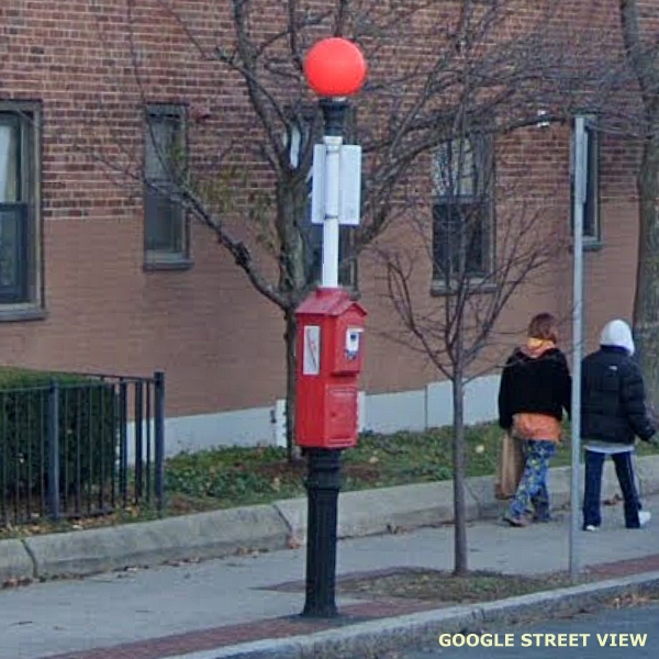 A great old globe for a fire alarm box. (Bunker Hill Street)