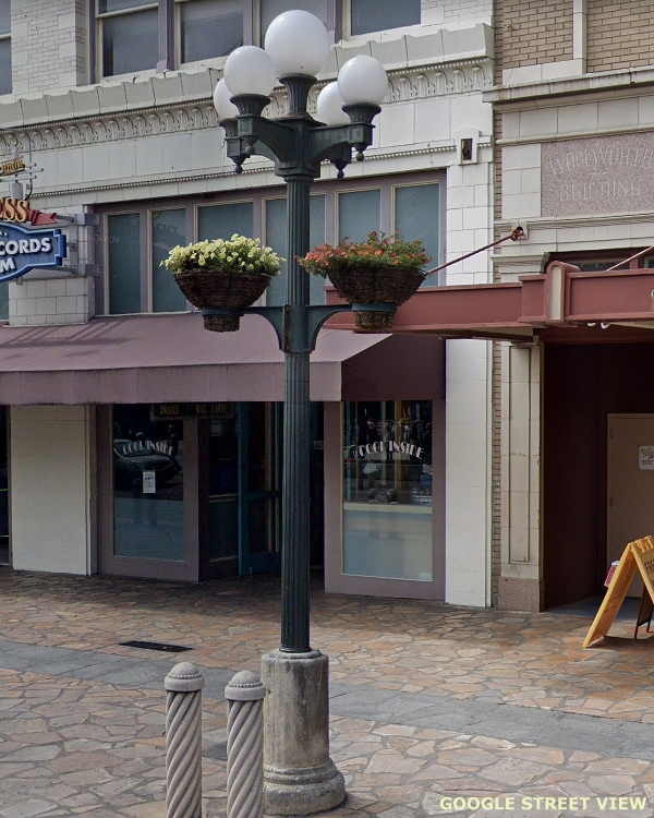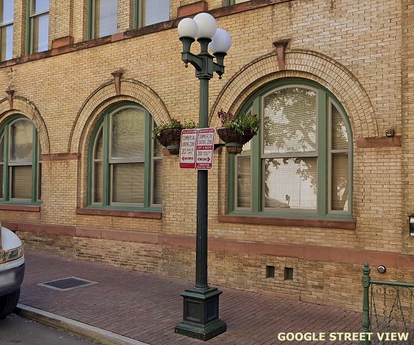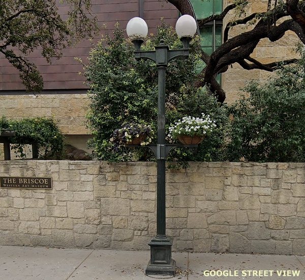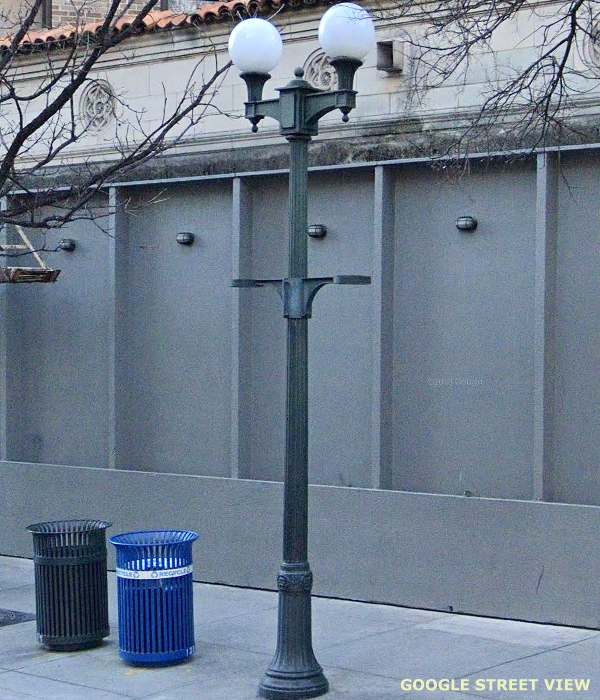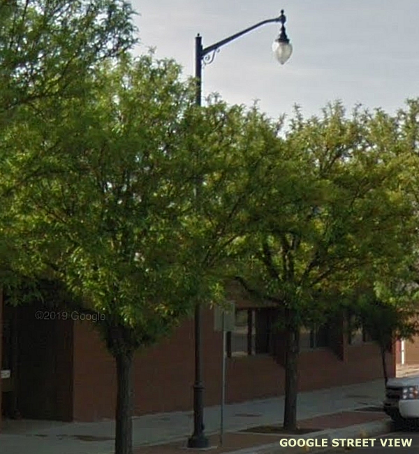 (This is Part Twenty Three of a Street View tour of vintage and historical street and pedestrian lights for enthusiasts to view and in hopes of encouraging cities and towns to preserve some of these old luminaires and electroliers, or at least choose replicas that reflect the character of historic districts when modernizing their lighting. The images link to Google Street Views to make it easy to "look around" if an image interests you. The photos begin in