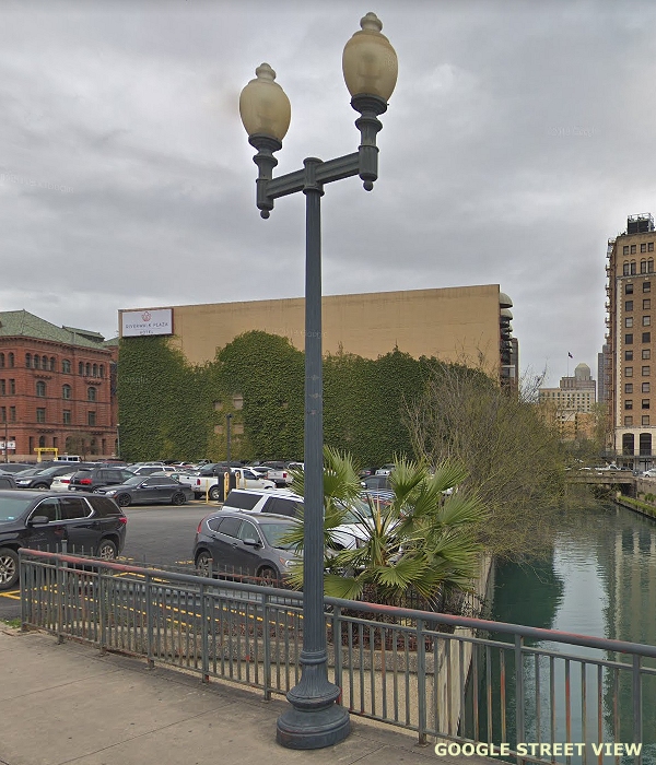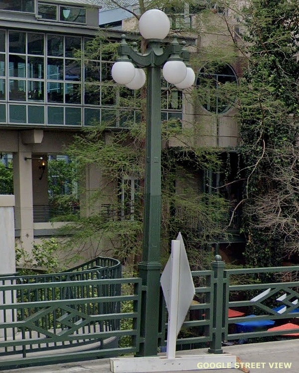 Quadruple globes. (St. Mary's Street Bridge, San Antonio River)