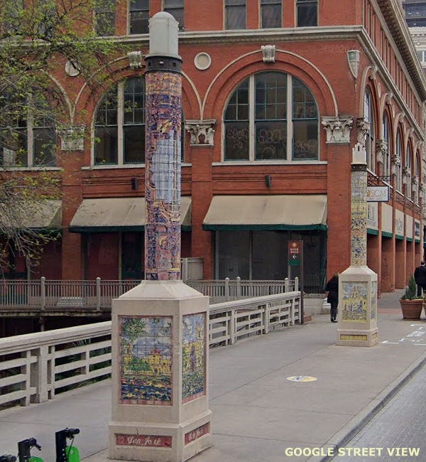 Double acorns lighting the way. (Nueva Street Bridge, San Antonio River)
