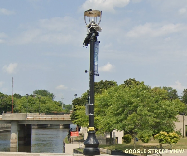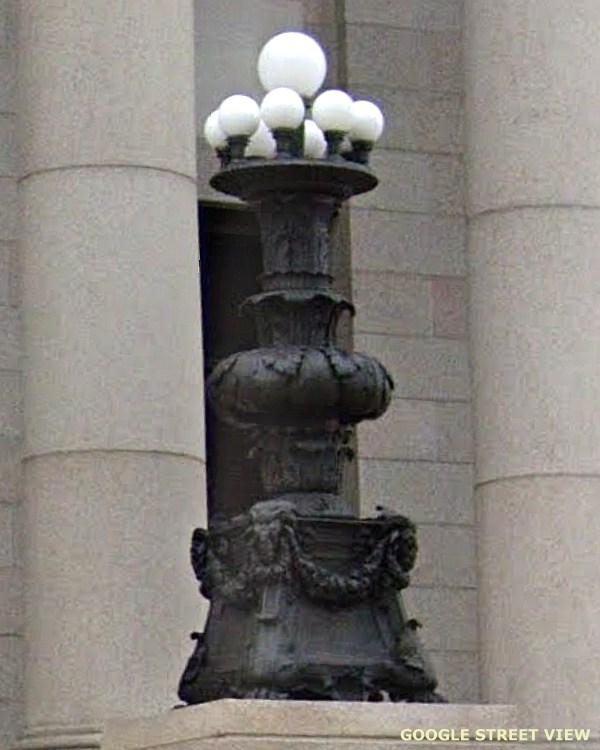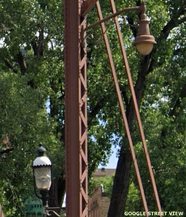 (This is Part Twenty Four of a Street View tour of vintage and historical street and pedestrian lights for enthusiasts to view and in hopes of encouraging cities and towns to preserve some of these old luminaires and electroliers, or at least choose replicas that reflect the character of historic districts when modernizing their lighting. The images link to Google Street Views to make it easy to "look around" if an image interests you. The photos begin in