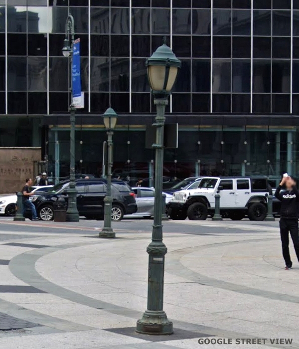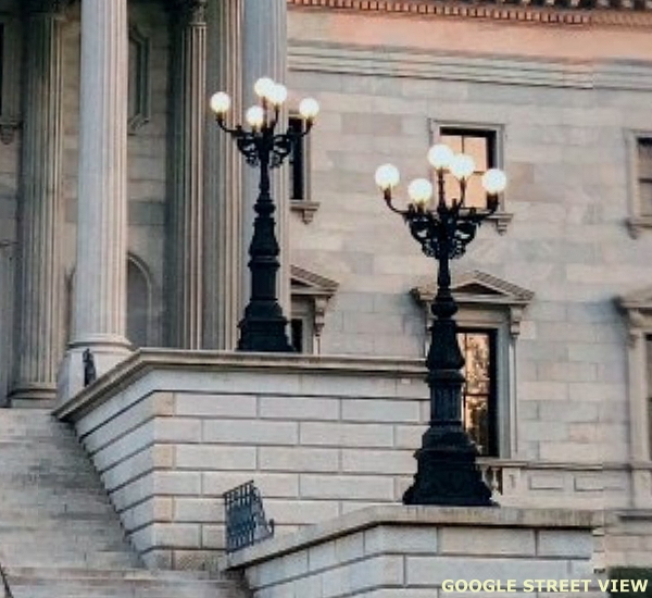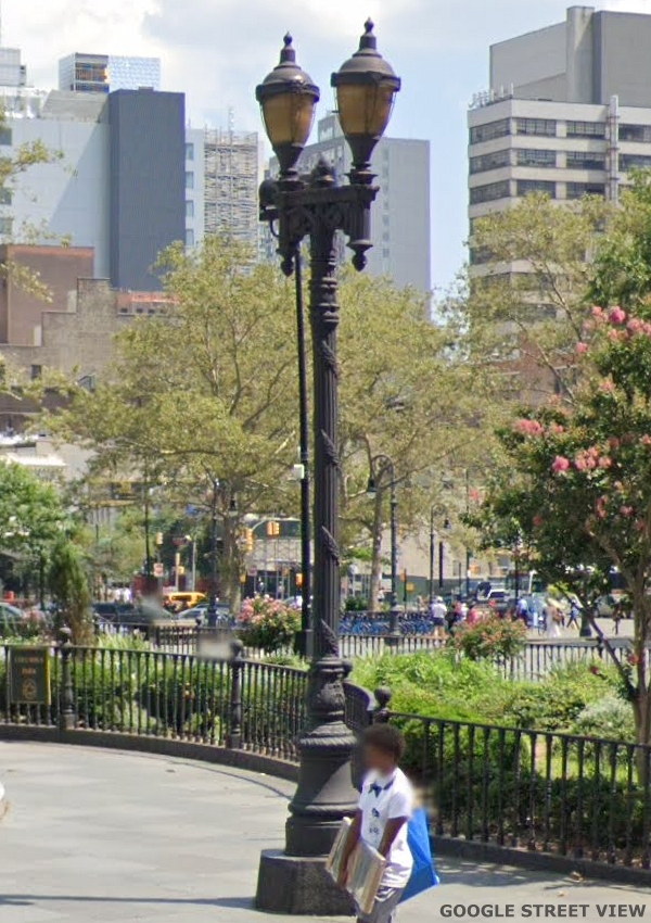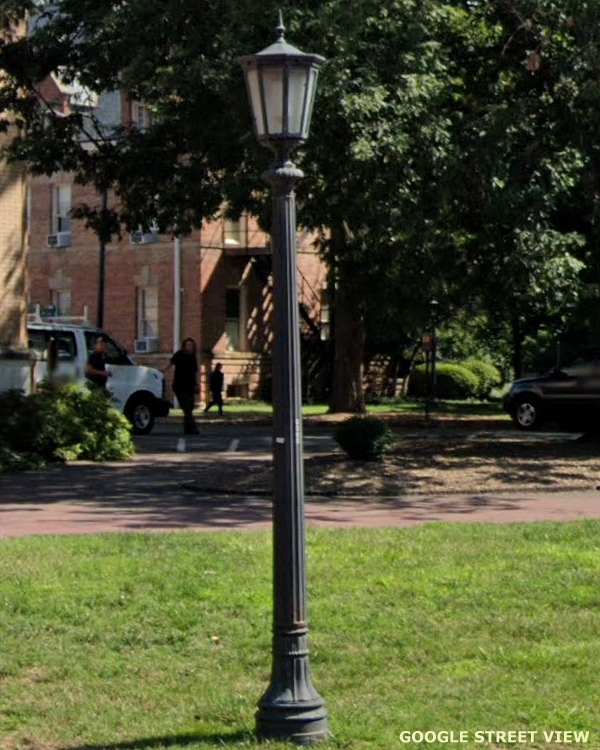 (This is Part Twenty Six of a Street View tour of vintage and historical street and pedestrian lights for enthusiasts to view and in hopes of encouraging cities and towns to preserve some of these old luminaires and electroliers, or at least choose replicas that reflect the character of historic districts when modernizing their lighting. The images link to Google Street Views to make it easy to "look around" if an image interests you. The photos begin in