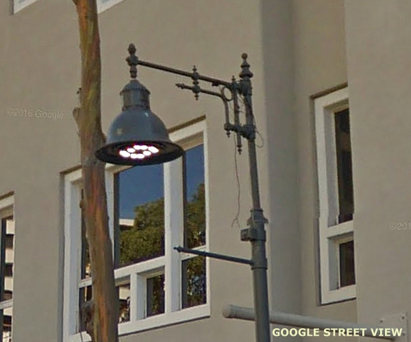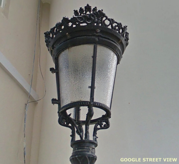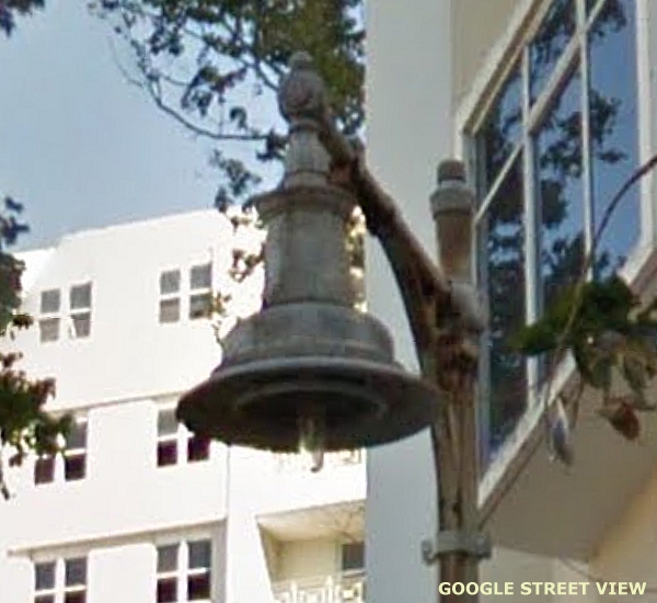 (This is Part Twenty Seven of a Street View tour of vintage and historical street and pedestrian lights for enthusiasts to view and in hopes of encouraging cities and towns to preserve some of these old luminaires and electroliers, or at least choose replicas that reflect the character of historic districts when modernizing their lighting. The images link to Google Street Views to make it easy to "look around" if an image interests you. The photos begin in
