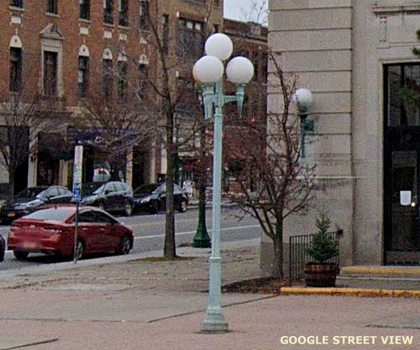 The Niagra-Mohawk Building: While techniclally not a street light the Niagra-Mohawk Power Company used its aet-deco building to light the street, obviously before electrical conservation. Nonetheless, it is still a glowing historical artifact, now owned by National Grid.