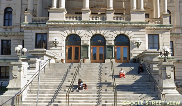 Quadruplets alongside the stairs. (Courthouse, Montgomery Street)