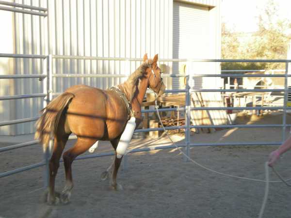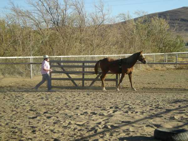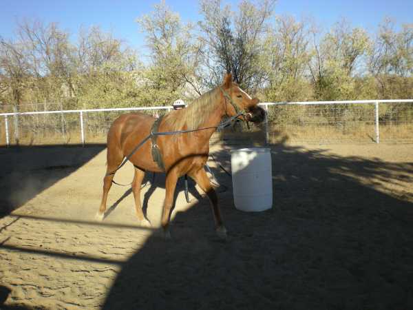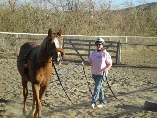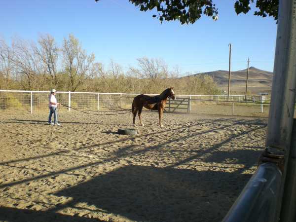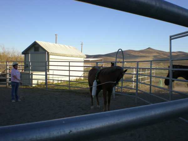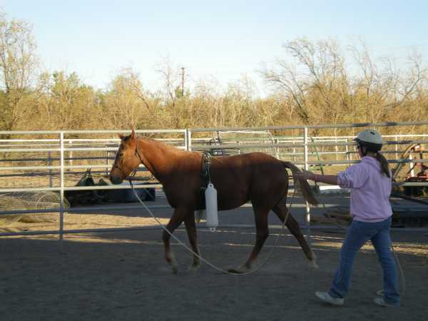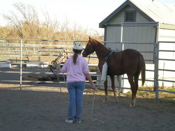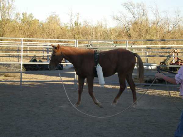 These objectives accomplished (including driving at a trot) we decided to return to the round corral and up the ante. We clipped on some Atwood boat bumpers (that act kind of like a rider's legs) and we decided to let her move around with the bumpers slapping her sides.