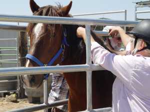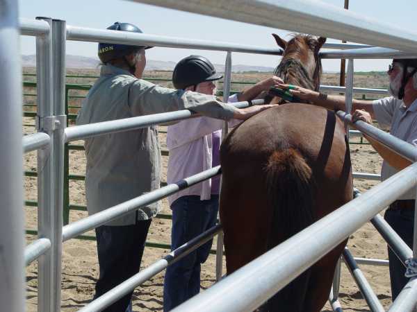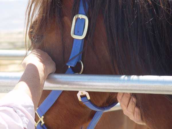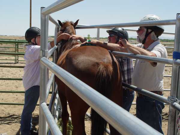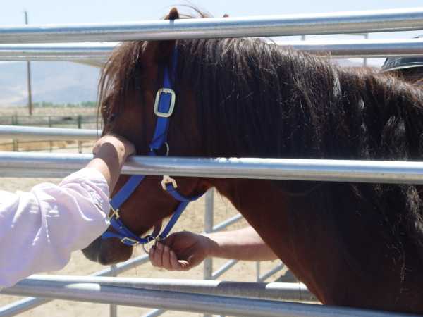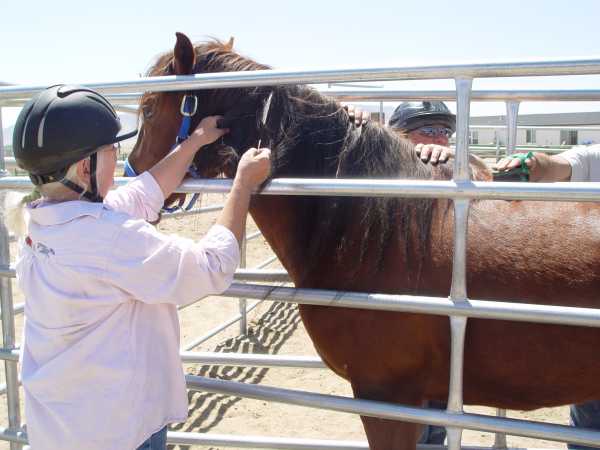 Kruzer still wouldn't tolerate being touched by humans so we eased him into the safe squeeze and immersed him in humans. The first day was mainly scratching and rubbing by 5 people. The second day we focused on brushing him and untangling his mane. Such activities are social by nature and tend to settle the "touch-me-nots."
