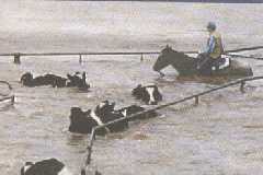 Unidentified rancher moving cows to higher ground near Modesto, CA
