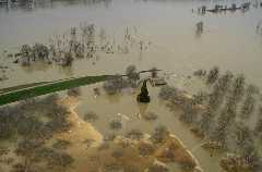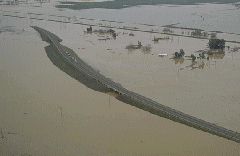 The downflow of flood runoff lasted for several days, taxing the vast network of tributaries, rivers and the California delta region. These bodies of water are lined with levees which are designed to keep water in the rivers and off low-lying communities and farmlands. At least 26 of them failed. |