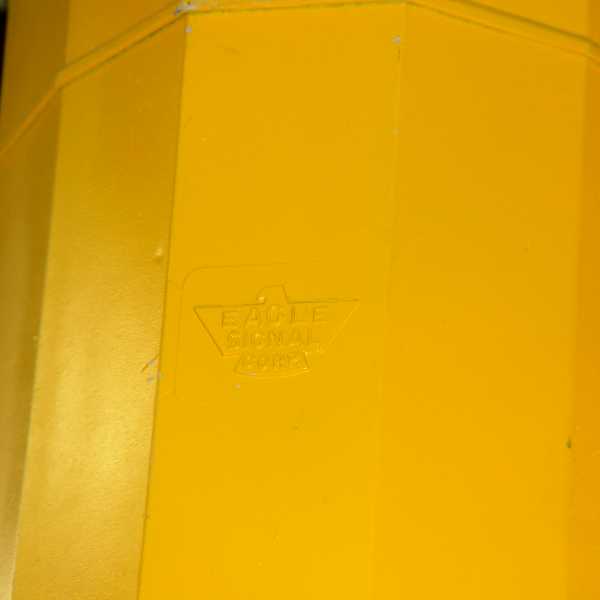 | The back of the Eaglelux signal is ribbed with each section displaying a small eagle logo and the trademark, Eagle Signal Corp. |