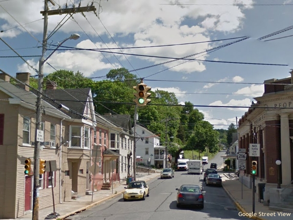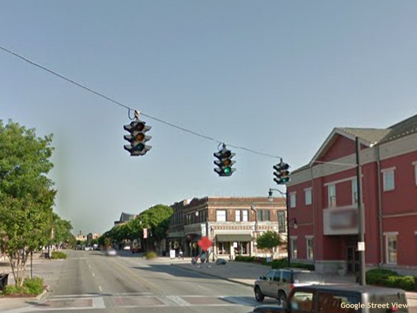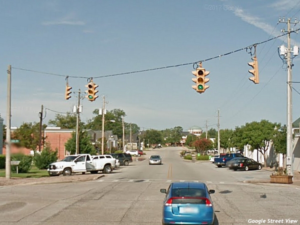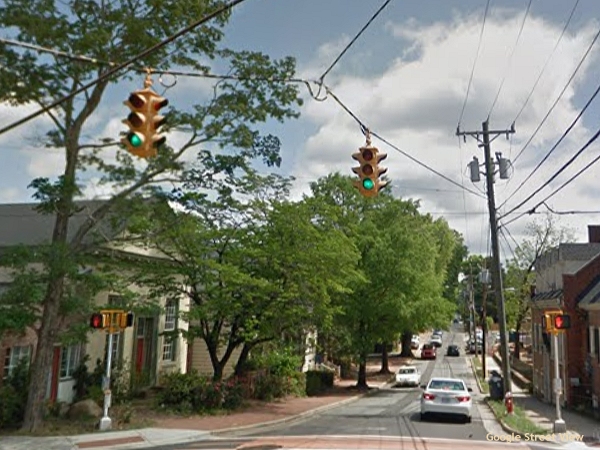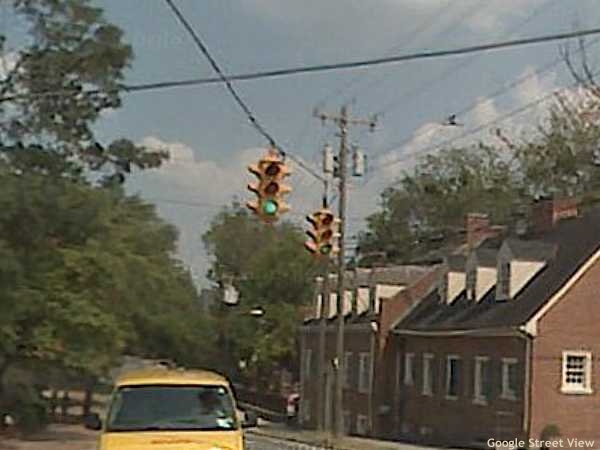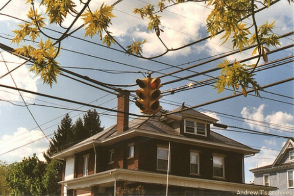 While the new MUTCD standards required redundancy in traffic signal installations and single signals were no longer compliant, eight inch signals were still approved for use on streets where the posted speed limits were 40 MPH or less. Some cities recycled fixed four-way signals that they had removed from other intersections that were being modernized, and hung them as the second (redundant) signal at older intersections that were not being redesigned. These installations were economical and maintained the original character of some districts. They also didn't prevent the addition of later safety improvements. |