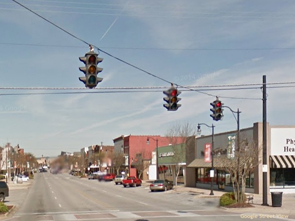 Gadsden, AL, really went big when they decided to completely refurbish old 4-way signals from a variety of intersections and use them to preserve a traditional look in their Broad St. historic district. Here are a couple of examples. |