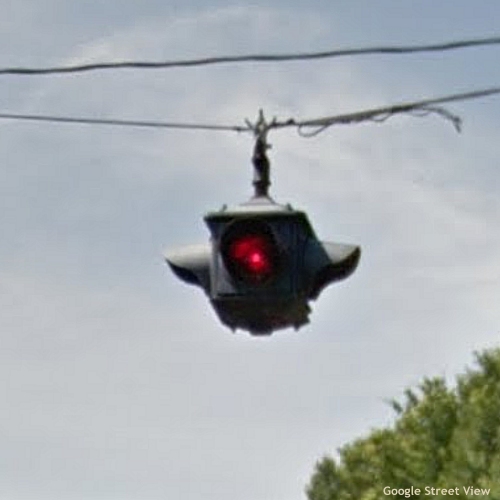 Bardstown went all out with their four-way restorations, retrofitting them with LEDs and spanning most of them from steel masts that incude pedestrian signals and wireless intersection interconnects. |