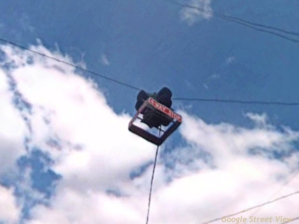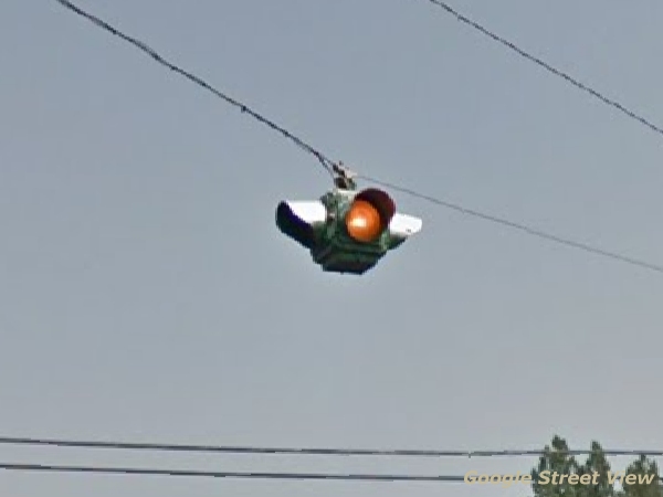| These street view images are not very clear. These signals appear to be old porthole signals, possibly old 2-color Southern Autoflows converted to a bouncing beacons. (If anyone has better images or knows the details about these signals, please email me.) |