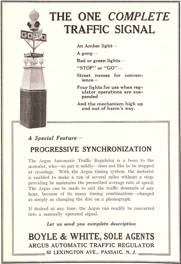 This signal manufactured by Attica Traffic Signal Company in 1925 offered what was perhaps the first "countdown" signal. The smaller lights would go out one by one to inform drivers and pedestrians as to how much time was left in the signal's cycle.