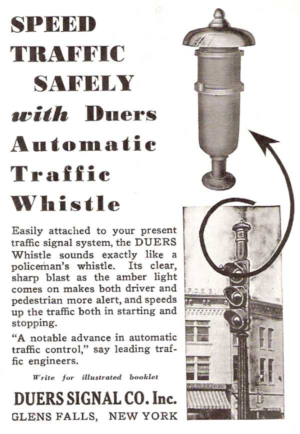 Although automatic traffic signals were replacing traffic police and police were more involved in ensuring compliance with traffic control devices and protecting pedestrians rather than actually direct traffic, some engineers still wanted divers to hear a familiar whistle when signals changed.