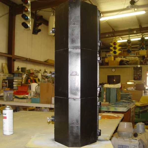 McCain produced aluminum and polycarbonate signal heads in 8" and 12" sizes. This is a typical 8" McCain with classic California full round visors.