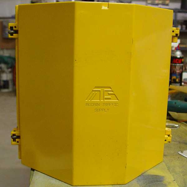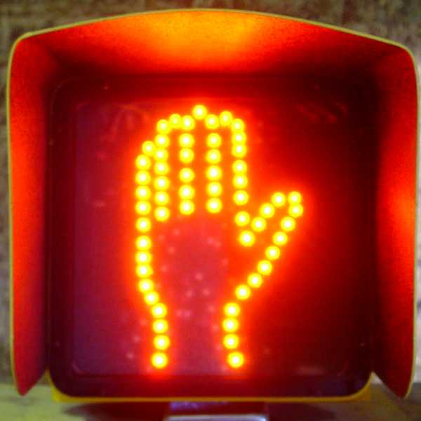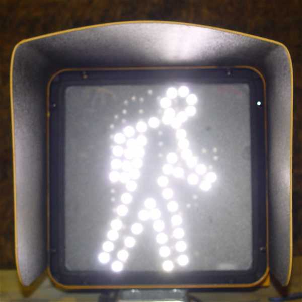 The signal displays a Cooper LED panel where the orange hand and white walking man are superimposed together on the LED panel. A built-in conflict monitor prevents both displays from illuminating at the same time. If it senses power at both the hand and walking man leads, the signal stays dark.