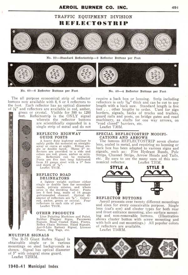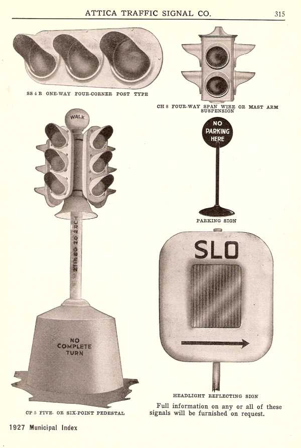 This section includes old trade magazine advertisements and catalogs for what we would now consider to be classic or antique traffic signals and other traffic control devices. Clicking on a link or thumbnail will bring up a larger size view of the ad. |