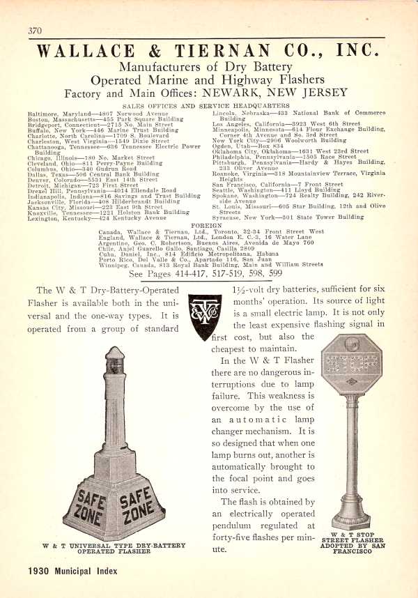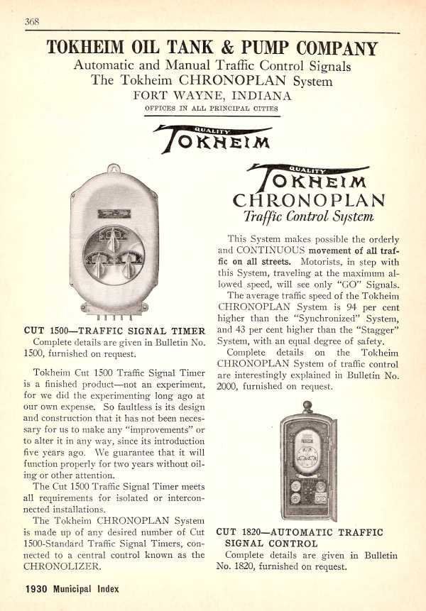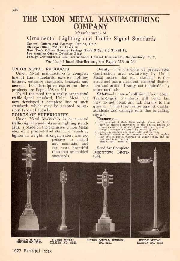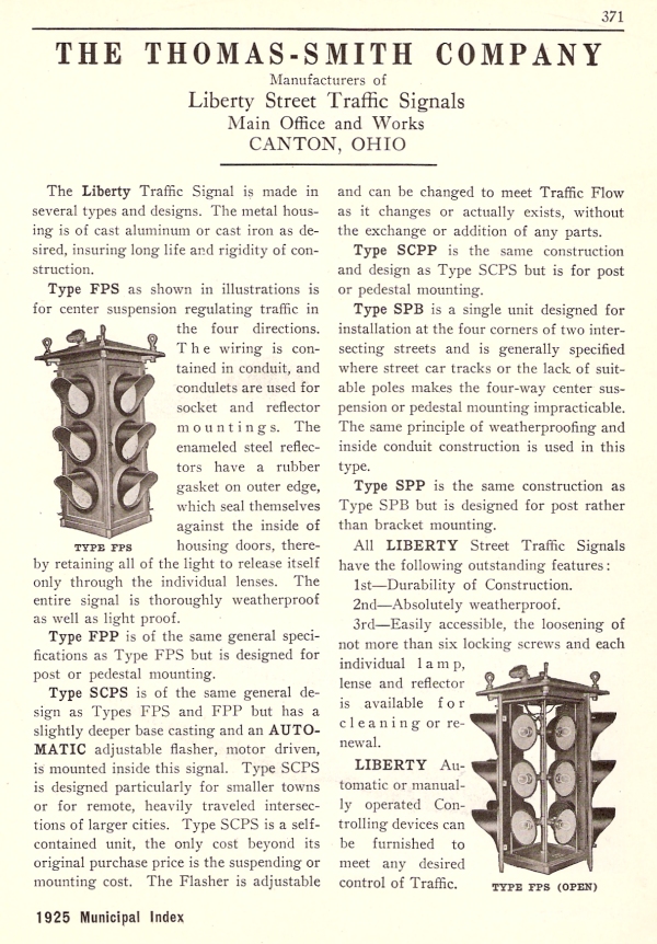| This section includes old trade magazine advertisements and catalogs for what we would now consider to be classic or antique traffic signals and other traffic control devices. Clicking on a link or thumbnail will bring up a larger size view of the ad. |