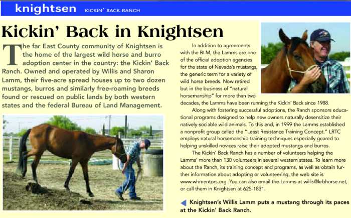 Contra Costa County's Welcome Magazine includes a feature on the wild horses as a significant portion of its description about Knightsen. While there is a small faux pas in their description of the project (it's the largest wild horse adopter support organization in the world), the overall impression of the project and the town is a good one.