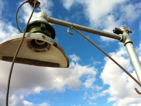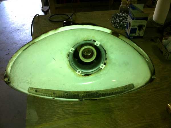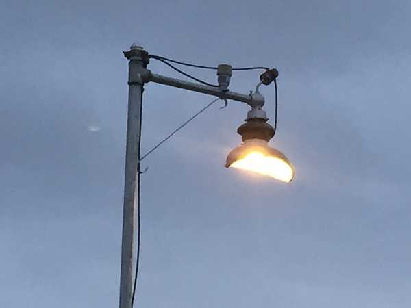 ![]() This particular luminaire has a crescent moon reflector designed by Wheeler that was often used by Hartford-Faence and Wheeler. It is designed to cut off light from being directed toward buildings but distributes light along the street. Such designs would generally be found on residential streets to prevent stray light from entering windows rather than in business districts where more uniform light would be desired. The open reflector design also helped protect "dark skies." This luminaire, as with many, had been converted to 110 volt service. It still had a Jones socket, but the film disc cutout between the bayonet blades had been fitted with a permanent insulator. |