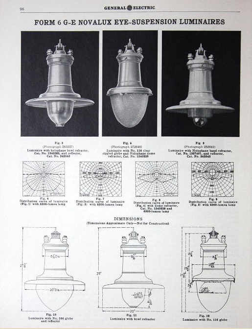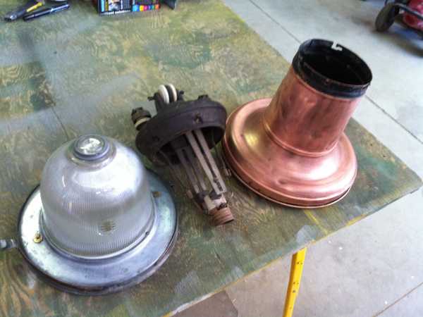 ![]() The Form 6 had a cast iron cover and a long body made of thin copper. The body originally held a 6.6 amp isolation autotransformer that would keep the high voltage series circuit alive when a lamp failed. The model having a prismatic refractor had a steel reflector in which the refractor was seated. As the body of the lamp was metal, it was suspended by means of an insulator so that the span wire would not become energized in the event any internal wiring touched the metal body. This luminaire was probably originally painted black. Most of the copper was showing when I obtained it so I simply cleaned it up. The copper is very soft and shows numerous dents, most likely from rocks and other abuse. This particular light came from Cheyenne, WY where it was in service at least as late as the 1940s.