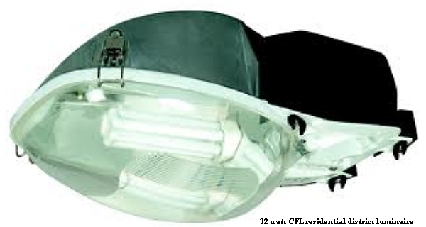 My personal view is that compact fluorescent lamps (CFLs) have been grossly overlooked for street lighting use, especially in residential areas and on narrower streets where 3,000 to 5,000 lumen lamps are appropriate. CFLs often make conversions from incandescent lighting incredibly easy and economical. If an incandescent luminaire is still functional and provides a reasonably desirable light pattern, replacing the incandescent lamp with a CFL can produce similar illumination for less than $20.00 while saving hundreds of dollars in energy costs over the life of the lamp. Most CFLs can simply be screwed in the same sockets as incandescent lamps. CFLs are also now being made to replace mercury vapor lamps, providing similar cost savings. My experience is that a CFL replacement produced by a reputable manufacturer will give years of dusk-to-dawn service while providing a soft, natural light that is similar to an incandescent lamp. (Cool white models are also available when it is desirable to replicate a color-corrected mercury vapor appearance.) One consideration that needs to be made when retrofitting older lamps involves stray light cutoff. CFLs have long light producing bodies similar to mercury vapor lamps, as opposed to a relatively small light producing areas in tungsten filament incandescent lamps. Where sharp cutoff is a high priority, a CFL may not be the best replacement, however for most other applications a CFL may be the most economical means of extending the life of a luminaire while reducing energy consumption. |