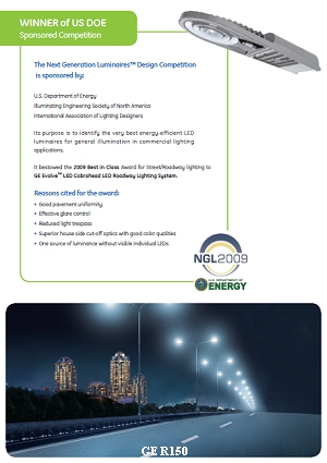 While HPS luminaires eventually dominated the streets as incandescent lamps did in the mid 20th century, other lighting methods were also being developed. Sodium vapor was energy efficient and monochromatic, producing less light pollution. However studies showed that white light improved drivers peripheral vision by 50 percent and took reduced driver's average reaction times for braking by 25 percent. Sodium designers improved color output but safety considerations, particularly where cross traffic was involved, warranted a return to more natural lighting. "Trespassing" light would have to be controlled by optics rather than lamp color. (Links to visibility studies and color rendering reports appear on Page Five.) |