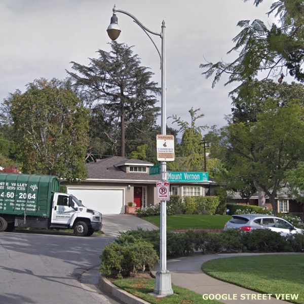 Low intensity illumination. Another view showing relative height. (Bellefontaine Street & S. Arroyo Boulevard)