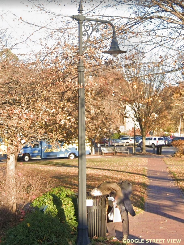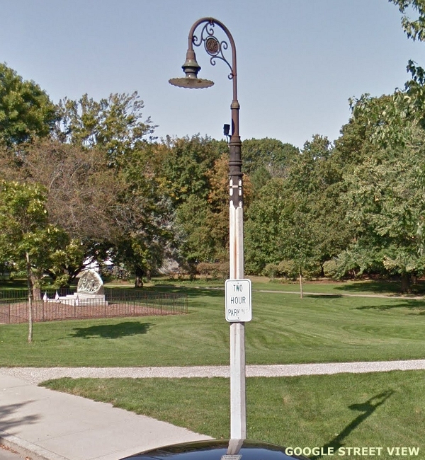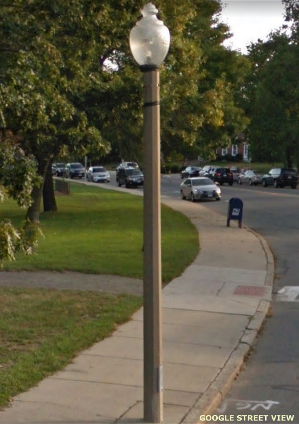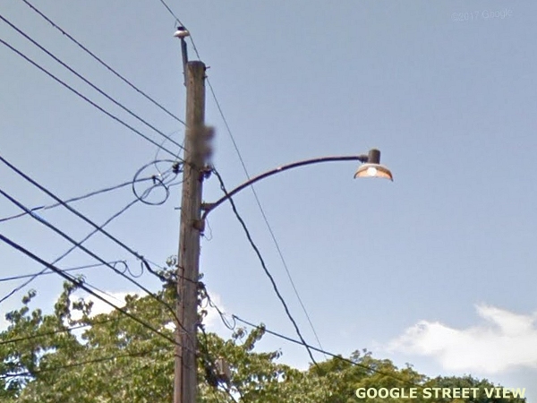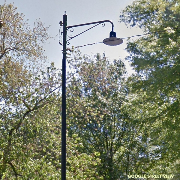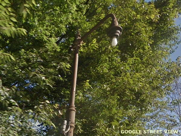 (This is Part Six a Street View tour of vintage and historical street and pedestrian lights for enthusiasts to view and in hopes of encouraging cities and towns to preserve some of these old luminaires and electroliers, or at least choose replicas that reflect the character of historic districts when modernizing their lighting. The images link to Google Street Views to make it easy to "look around" if an image interests you. The photos begin in