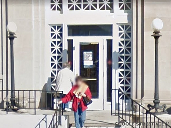 Opal glass globes on posts with those great feet, 1915. (US Post Office & Mine Rescue Station, Main & 3rd Streets)