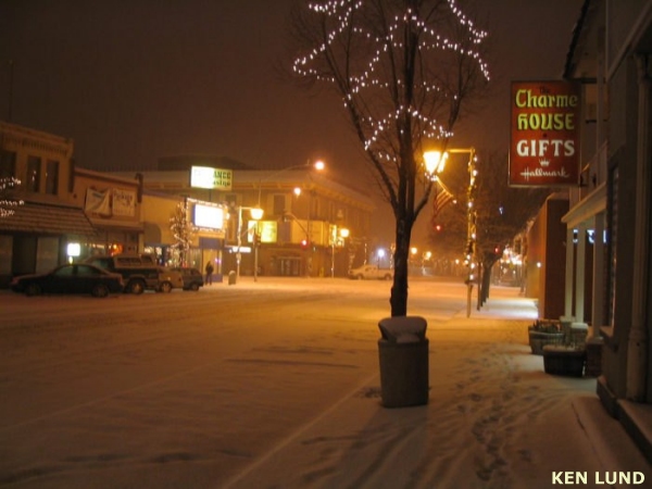 In the 1800s Winnemucca was often called "Lantern Town" as it was the first town in the area to hang oil lamps out at night for street lighting. Lanterns became the theme for downtown electric lighting. The unconventional street lamps were around as long as I can remember although the only reference I could find was a bulletin a few years back published by the state announcing that they had been retrofitted to improve energy efficiency. The lamps currently appear to be lower intensity HPS, however the opal glass panes and relatively close spacing provide a soft, relatively even glow along downtown streets.
