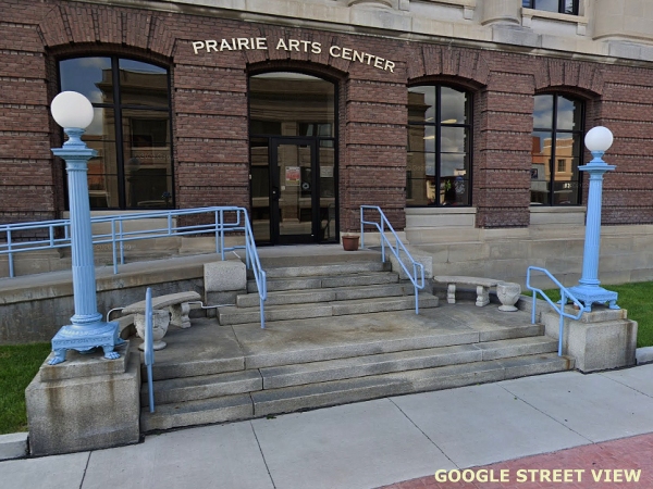 Well preserved opal glass posts. (Prairie Arts Center (former federal building) Jeffers Street)