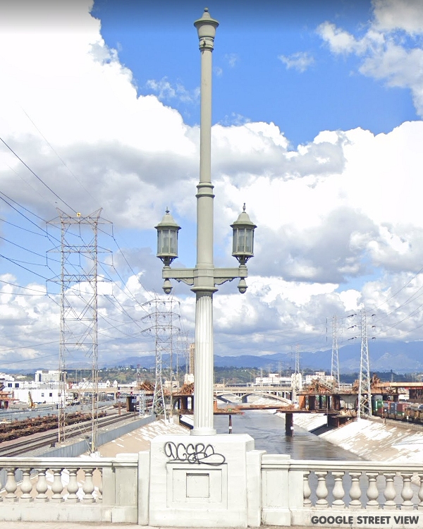 Twin "Metropolitan" style lamps, installed 1925. (Olympic Boulevard Viaduct)